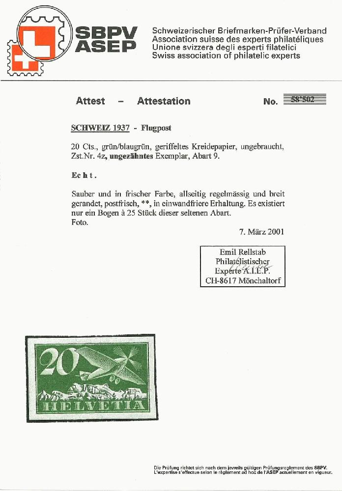 | Prüfer: | Rellstab, Emil (SBPV / ASEP (Schweizerischer Briefmarken-Prüfer-Verband)) |