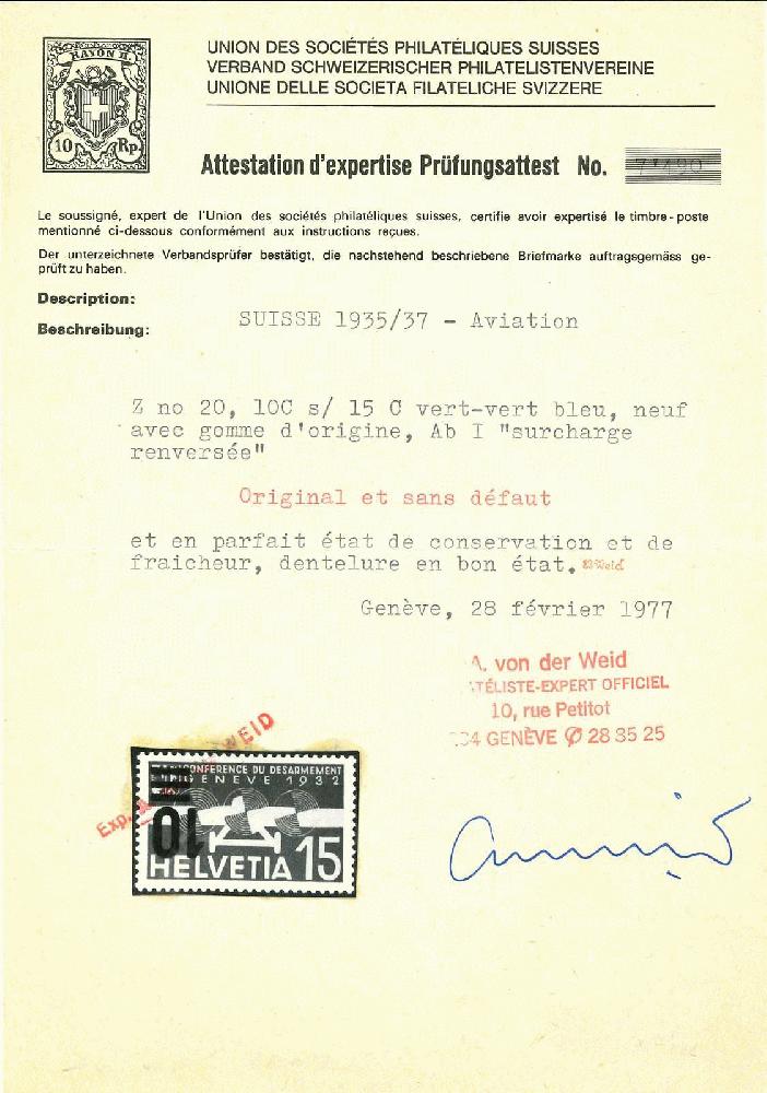 | Prüfer: | von der Weid, Alain (SBPV / ASEP (Schweizerischer Briefmarken-Prüfer-Verband)) |