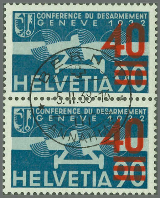 | Zusatzinformationen und Suchstichworte: | Rapp Auktion 2022 Auktionstermin: 2. - 7. Mai 2022 Los 511 Schweiz Flugpostmarken 40 auf 90 Rp. blau, Aufdruck hellrot, senkrechtes Paar mit zentrischem Vollstempel BERN 5.II.38, noch mit Gummi. Attest Eichele. Zuschlag 500,00 CHF |