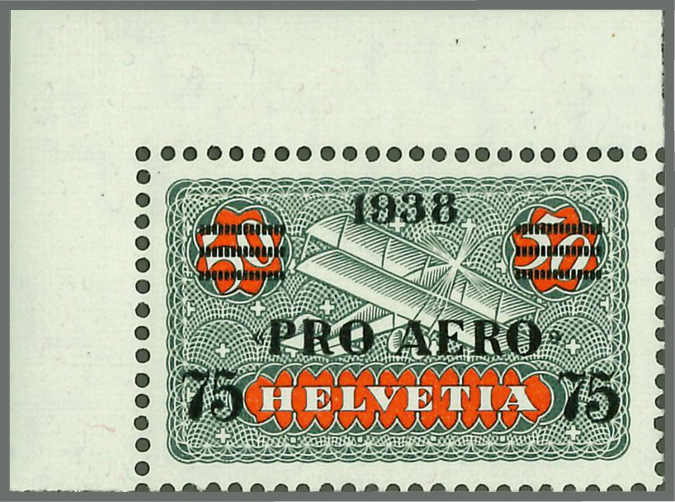 | Zusatzinformationen und Suchstichworte: | Rapp Auktion 2022 Auktionstermin: 2. - 7. Mai 2022 Los 516 Schweiz Flugpostmarken Pro Aero 1938, tadellos postfrisch aus der linken oberen Bogenecke, auch Bogenränder völlig falzfrei. Attest Eichele. Zuschlag 7.500,00 CHF |