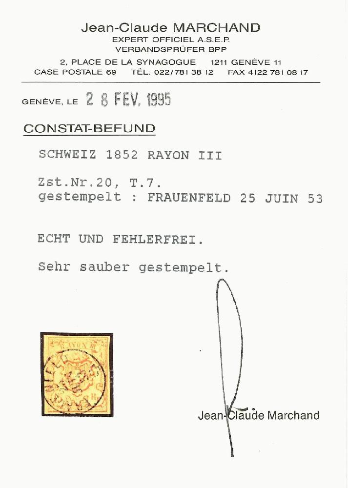 | Prüfer: | Marchand, Jean-Claude (SBPV / ASEP (Schweizerischer Briefmarken-Prüfer-Verband)) |