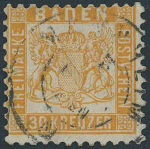 | Zusatzinformationen und Suchstichworte: | Ulrich Felzmann 175. Auktion Auktionstermin: 30. Juni 2022 Los 5004 Altdeutschland Baden 30 Kr orangegelb, farbfrisch und zentrisch zart mit K2 MANNHEIM in optisch ansprechender Erhaltung, links oben hinterlegt mit Zahnergänzungen, Fotobefund Stegmüller BPP, € 3.200,- Ausruf 250,00 EUR |
