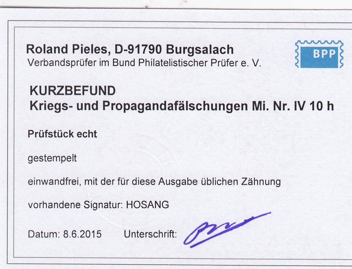 | Prüfgebiet: | Deutsches Reich Kriegs- und Propagandafälschungen 1939-1945 |