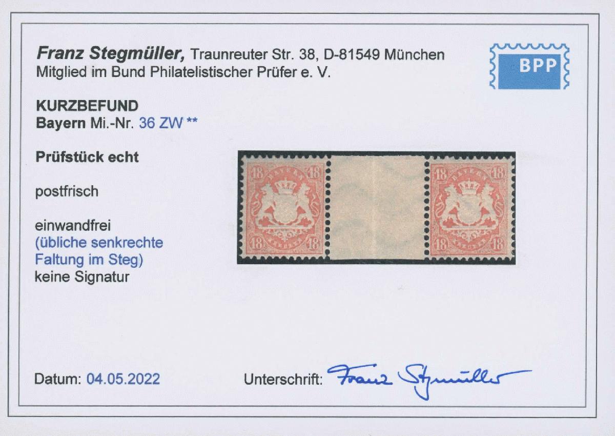 | Prüfer: | Stegmüller, Franz (BPP (Bund Philatelistischer Prüfer)) |
