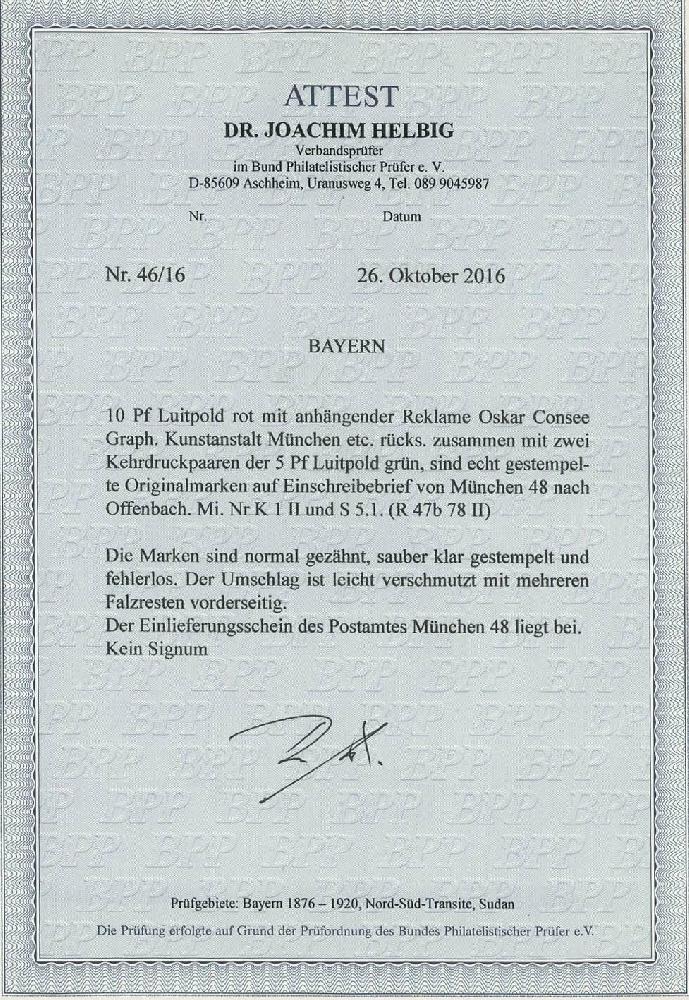 | Prüfgebiet: | Altdeutschland Bayern Zusammendrucke |