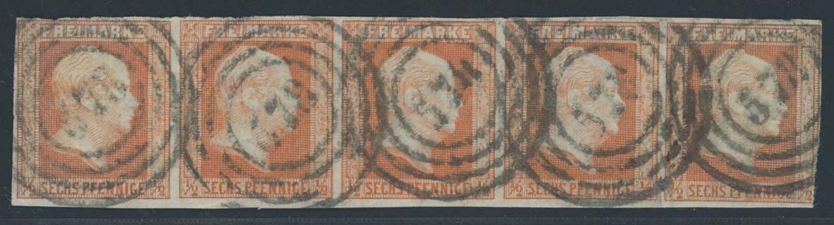 | Zusatzinformationen und Suchstichworte: | Ulrich Felzmann 175. Auktion Auktionstermin: 30. Juni 2022 Los 5089 Altdeutschland Preussen ½ Silbergroschen im waagerechten Fünferstreifen, Randmarken im Schnitt berührt, ansonsten vollrandig, ohne Vortrennschnitte, entwertet "578" - HAMBURG, signiert Richter sowie Fotoattest Flemming Zuschlag 250,00 EUR |