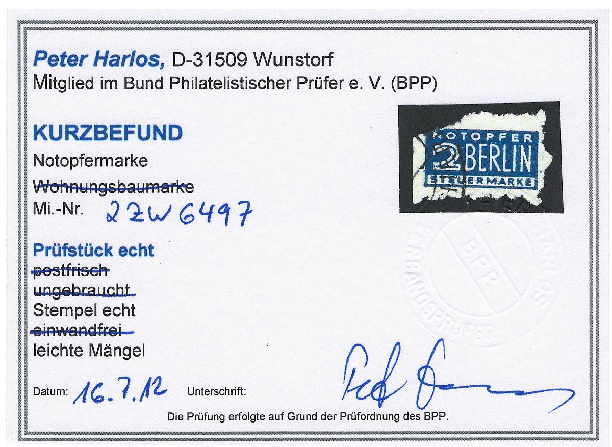 | Prüfgebiet: | Alliierte Besetzung Notopfer- und Wohnungsbaumarken |