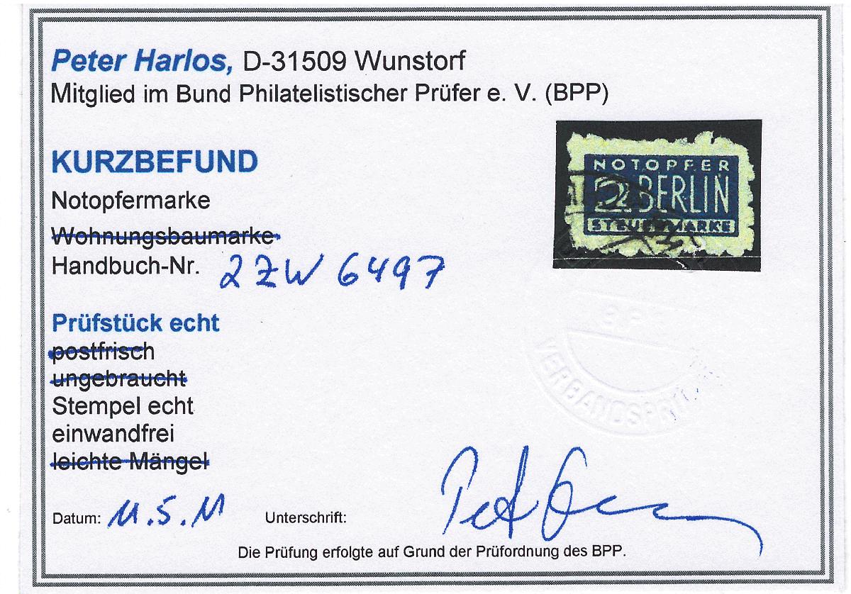 | Prüfgebiet: | Alliierte Besetzung Notopfer- und Wohnungsbaumarken |