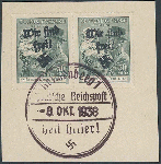 | Zusatzinformationen und Suchstichworte: | Ulrich Felzmann 175. Auktion Auktionstermin: 30. Juni 2022 Los 5798 Sudetenland Reichenberg Maffersdorf 50 H Masaryk mit Kind, tadellos vollzähniges waagerechtes Paar mit zentrischem Vollstempel auf überdurchschnittlich attraktivem Luxus-Briefstück, sign. Mahr BPP sowie Fotoattest Kleymann "... einwandfrei" Ausruf 200,00 EUR |