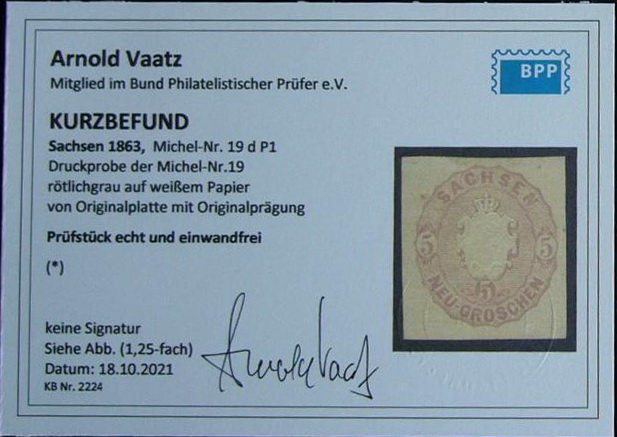 | Zusatzinformationen und Suchstichworte: | Druckprobe der Michel Nr. 19 |