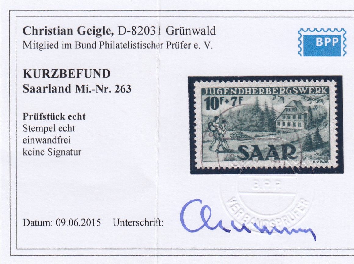 | Prüfgebiet: | Saarland (ab Mi-Nr. 206) |