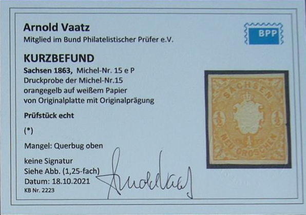 | Zusatzinformationen und Suchstichworte: | Druckprobe der Michel Nr 15 |