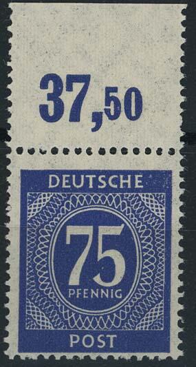 | Zusatzinformationen und Suchstichworte: | Ulrich Felzmann 175. Auktion Auktionstermin: 30. Juni 2022 Los 6022 Gemeinschaftsausgaben 75 Pfg violettultramarin, postfrisch mit dgz Oberrand im Plattendruck, Pracht, Befund ArGe Zuschlag 135,00 EUR |