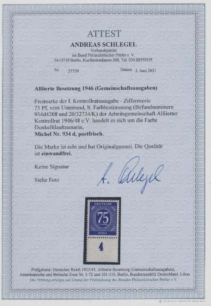 | Zusatzinformationen und Suchstichworte: | Ulrich Felzmann 175. Auktion Auktionstermin: 30. Juni 2022 Los 6023 Gemeinschaftsausgaben 75 Pfg dunkellilaultramarin, postfrisches Unterrandstück, Fotoattest A. Schlegel BPP "... einwandfrei" Zuschlag 135,00 EUR |