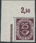 | Zusatzinformationen und Suchstichworte: | Ulrich Felzmann 175. Auktion Auktionstermin: 30. Juni 2022 Los 6303 Bundesrepublik Deutschland 25 Pfg Posthorn, ungefaltete Bogenecke links oben, tadellos postfrisch, unsigniert, Luxus Zuschlag 220,00 EUR |