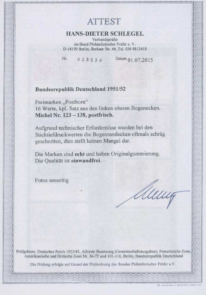 | Zusatzinformationen und Suchstichworte: | Ulrich Felzmann 175. Auktion Auktionstermin: 30. Juni 2022 Los 6323 Bundesrepublik Deutschland 90 Pfg Posthorn, ungefaltete "Riesen"-Bogenecke links oben, völlig ohne Büge, unsigniert, Luxus Ausruf 850,00 EUR |