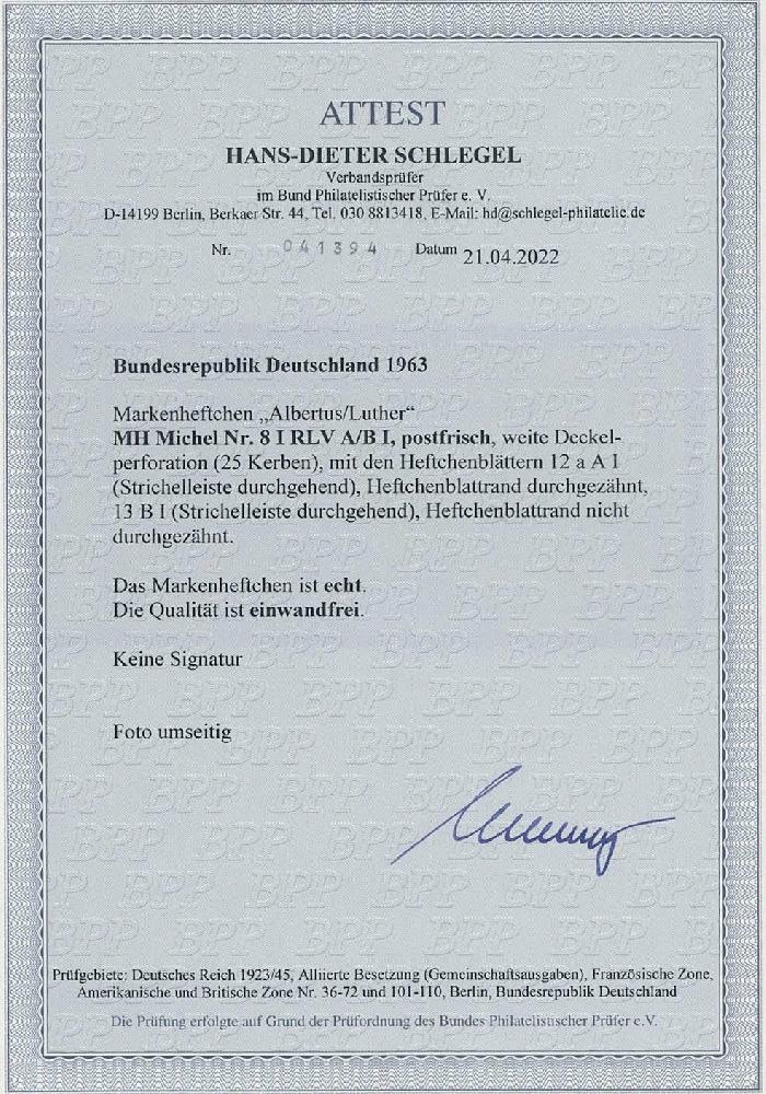 | Prüfgebiet: | Bund Markenheftchen |