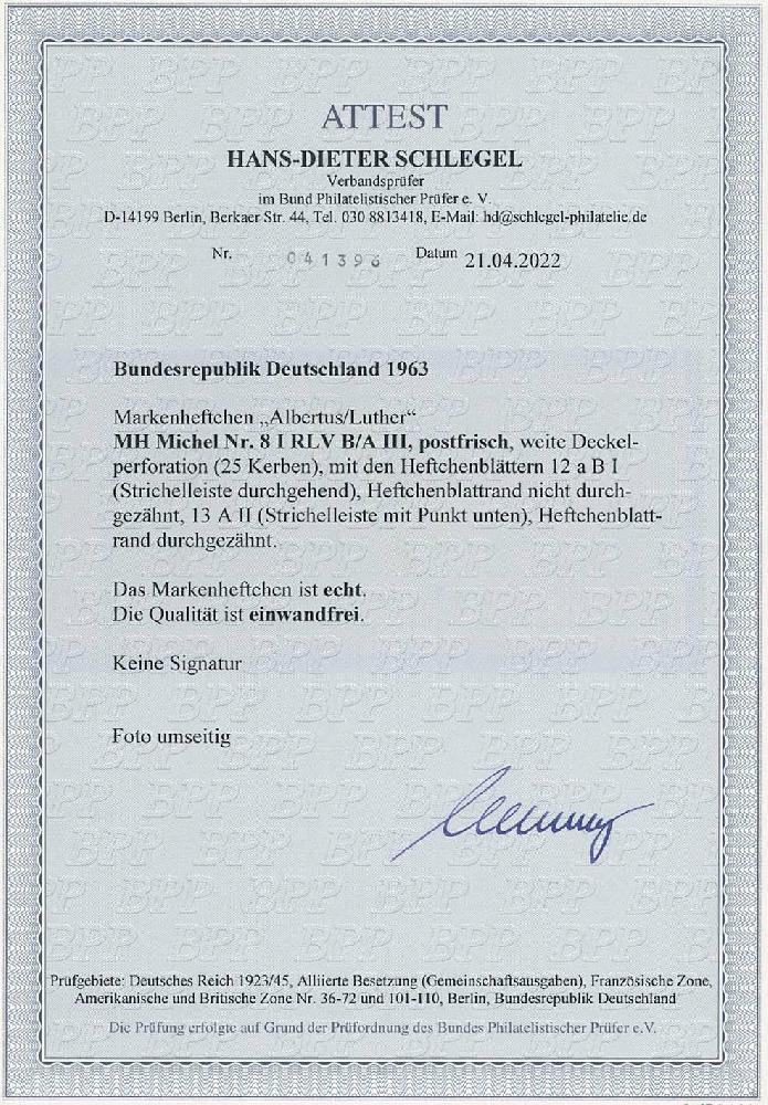 | Prüfgebiet: | Bund Markenheftchen |