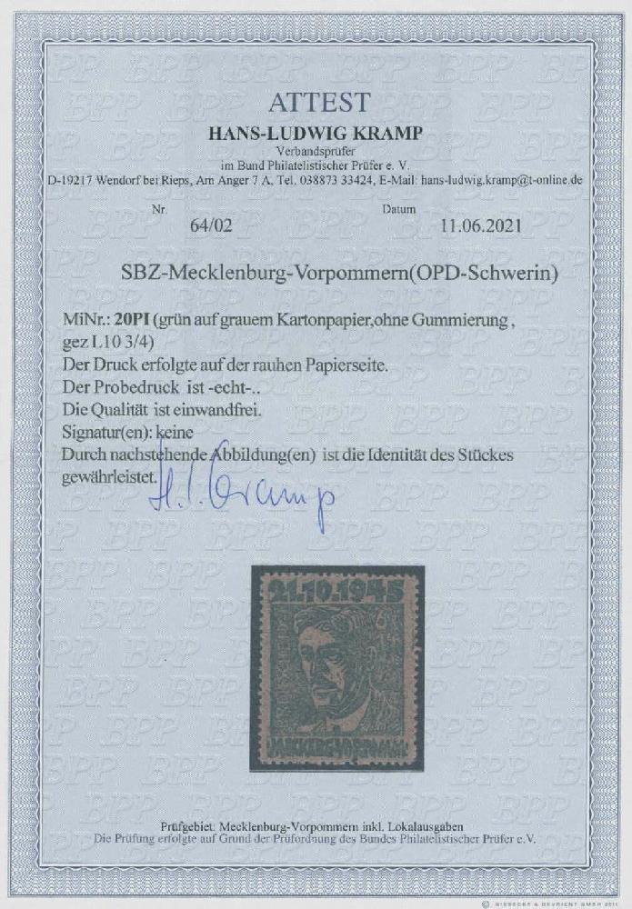 | Prüfgebiet: | Alliierte Besetzung SBZ Mecklenburg-Vorpommern |