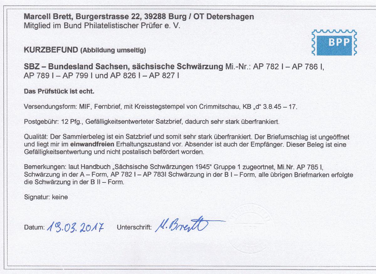 | Prüfgebiet: | Alliierte Besetzung SBZ Sachsen Sächsische Schwärzungen |