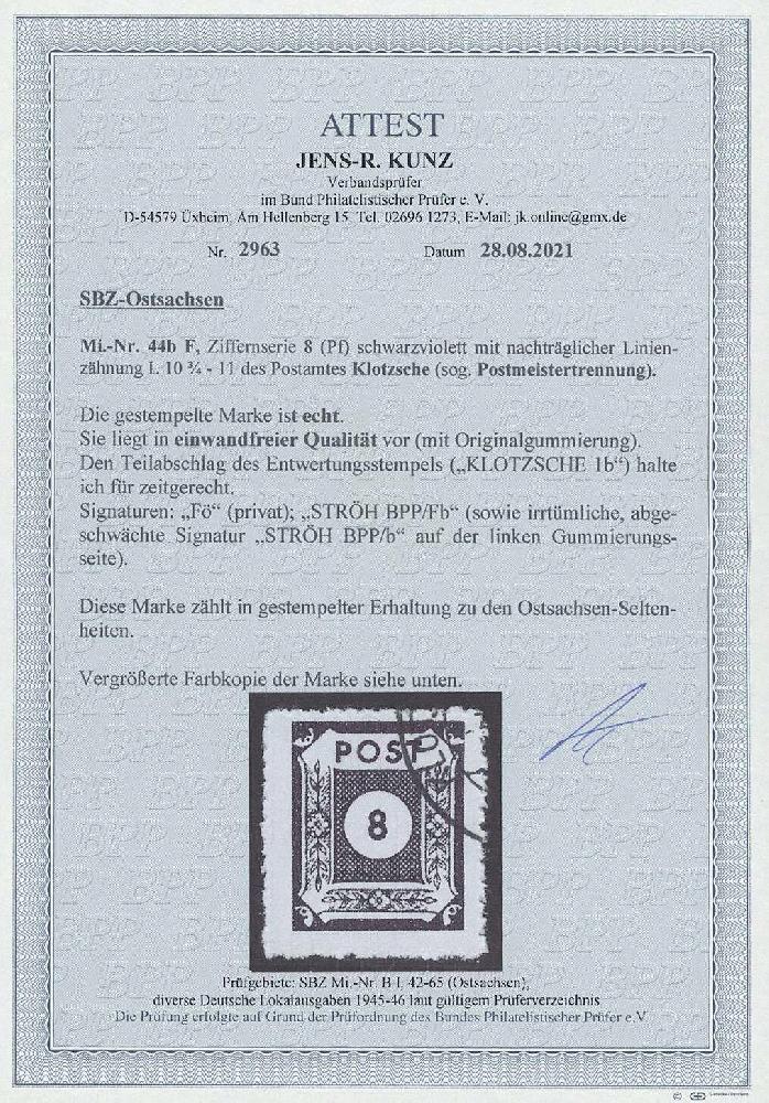 | Prüfer: | Kunz, Jens-R. (BPP (Bund Philatelistischer Prüfer)) |