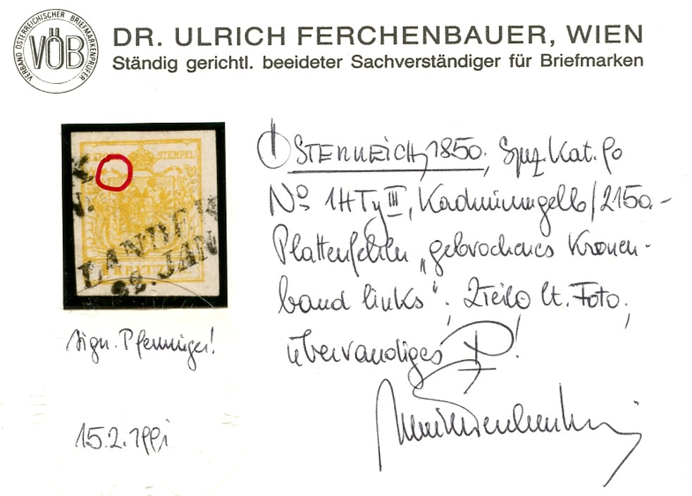 | Prüfer: | Ferchenbauer, Ulrich (VÖB (Verband Österreichischer Briefmarkenprüfer)) |