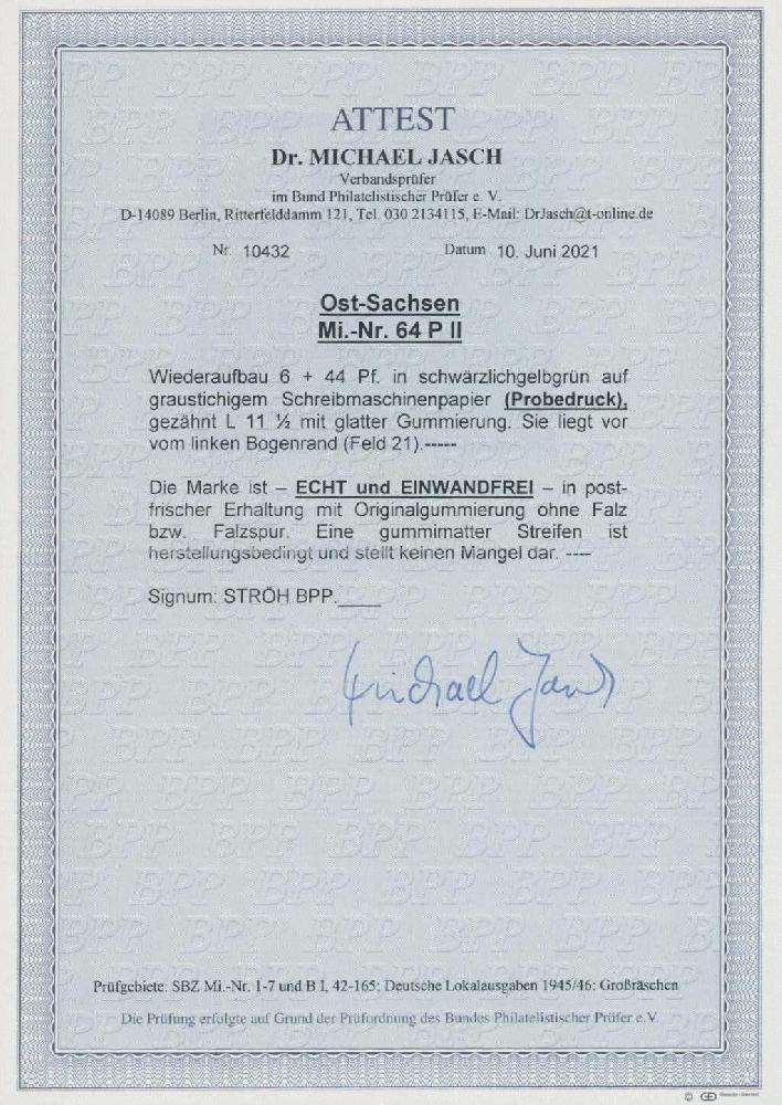 | Prüfgebiet: | Alliierte Besetzung SBZ Ost-Sachsen |