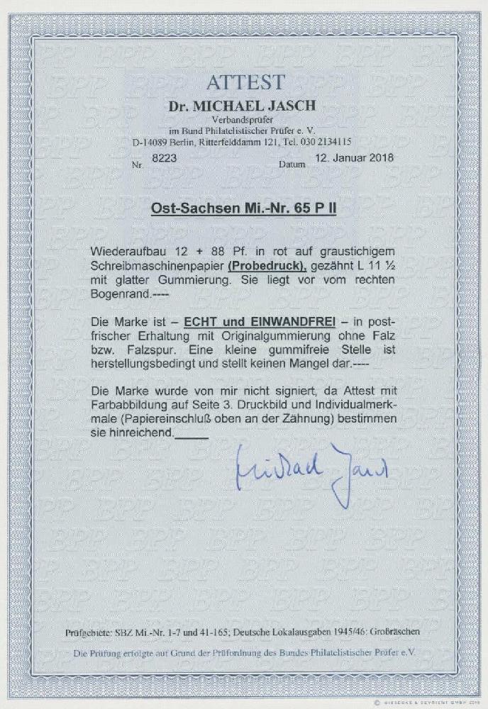 | Zusatzinformationen und Suchstichworte: | Ulrich Felzmann 175. Auktion Auktionstermin: 30. Juni 2022 Los 6101 SBZ Ostsachsen 12 Pfg Wiederaufbau rot, postfrischer Probedruck auf Schreibmaschinenpapier, kleine herstellungsbedingte gummifreie Stelle, Fotoattest Dr. Jasch BPP "... einwandfrei", € 750,- Ausruf 160,00 EUR |