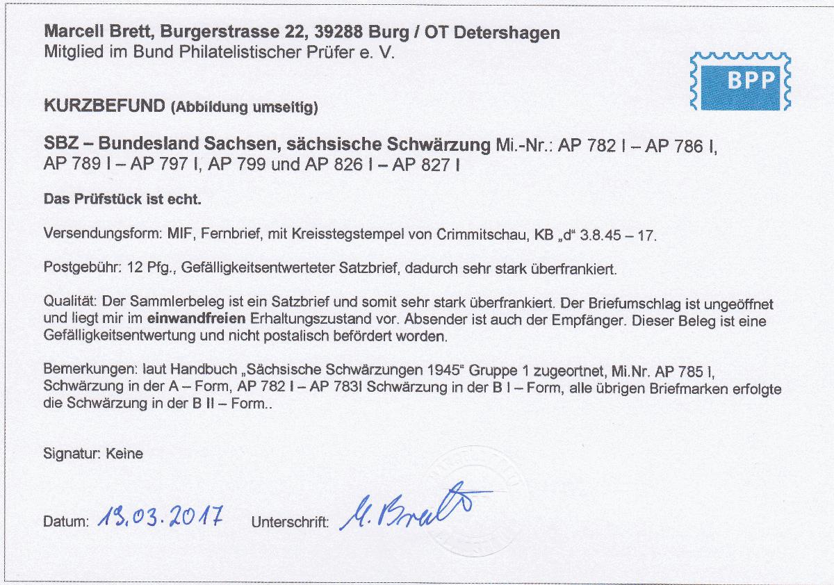 | Prüfgebiet: | Alliierte Besetzung SBZ Sachsen Sächsische Schwärzungen |