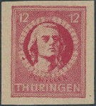 | Zusatzinformationen und Suchstichworte: | Ulrich Felzmann 175. Auktion Auktionstermin: 30. Juni 2022 Los 6108 SBZ Thüringen 12 Pfg dunkelbraunrot, ungezähnter Versuchsdruck postfrisch, Fotoattest Dr. Jasch BPP "... einwandfrei", € 800,- Zuschlag 180,00 EUR |