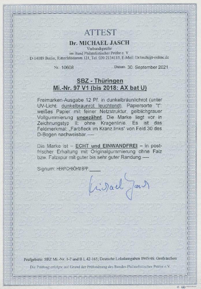 | Prüfer: | Jasch, Michael (BPP (Bund Philatelistischer Prüfer)) |