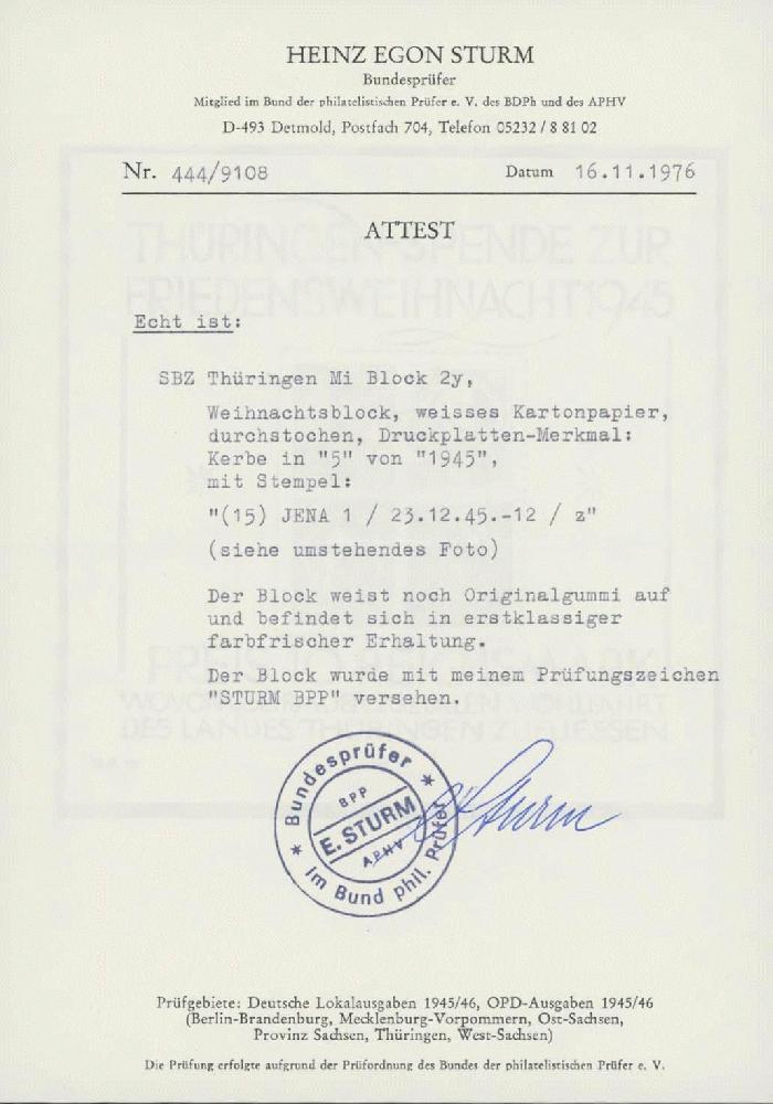 | Prüfer: | Sturm, Heinz Egon (BPP (Bund Philatelistischer Prüfer)) |