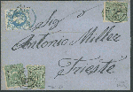 | Zusatzinformationen und Suchstichworte: | Ulrich Felzmann 175. Auktion Auktionstermin: 30. Juni 2022 Los 4502 Albanien SKODRA 11/3/1873, pre UPU period folded envelope bearing three 20 Para green each tied by ISKODRA 81 (A&P Type 04, no.3,R) and carried to Antivari, there additional Austria 10 Sld blue tied by "ANTIVARI 12 / 3" c.d.s, on reverse arrival mark "TRIEST 17/3". ex Dr. Jerger, certificate Ferschenbauer Zuschlag 500,00 EUR |