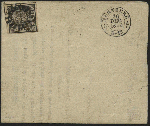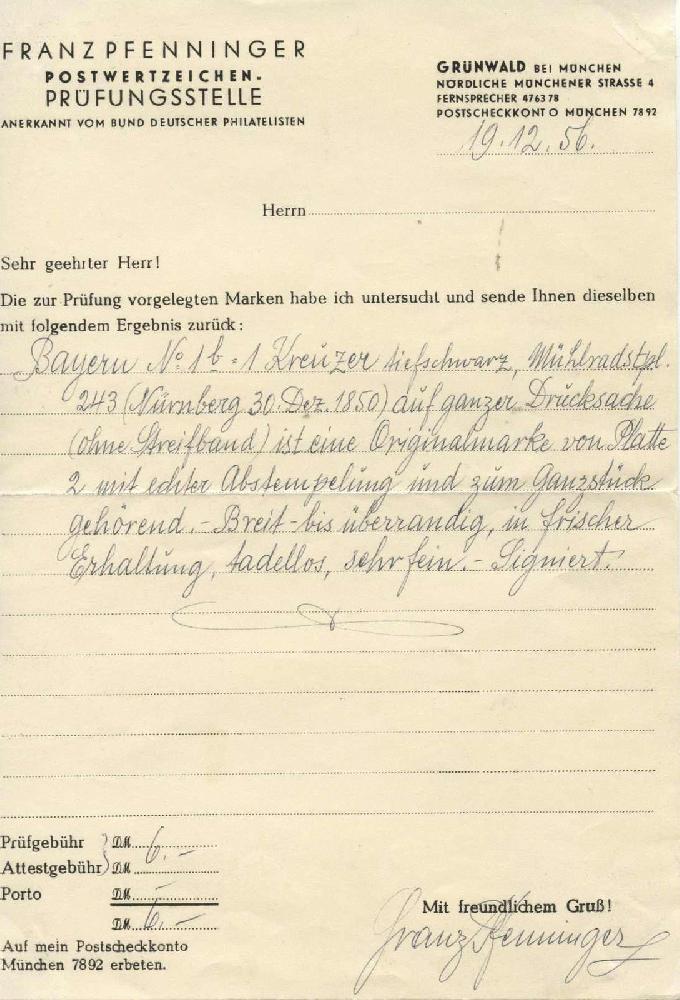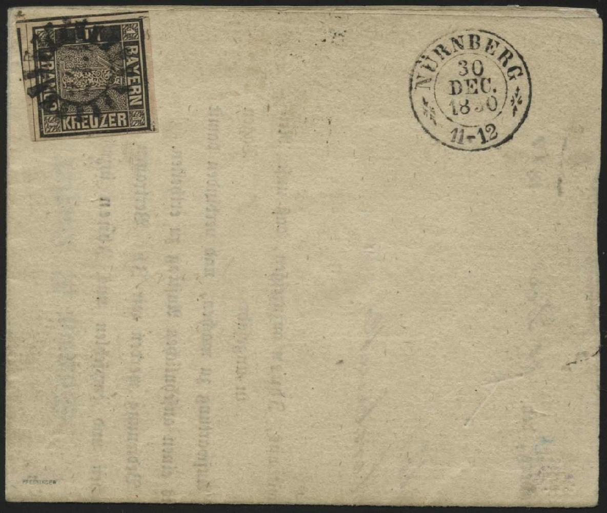 | Zusatzinformationen und Suchstichworte: | 8. Tiergarten Briefmarken und Münzen Auktion Auktionstermin: 01. Juli 2022 Los 3 Altdeutschland Bayern 1 Kreuzer schwarz, Platte 2, allseits breitrandig, links und unten mit vollen Zwischenlinien. Frische, tiefe Farbe und in feiner tadelloser Erhaltung mit Mühlradstempel " 243 " und beigesetztem Zier-K2 " Nürnberg 30. DEC. 1850 " auf Drucksache ohne Adressenschleife, innen nach Hersbruck adressiert. Eine besonders schöne Einzelfrankatur des Schwarzen Einsers in exellenter Qualität! Geprüft Pfenninger und Fotoattest Brettl BPP. Ausruf 2.800,00 EUR |