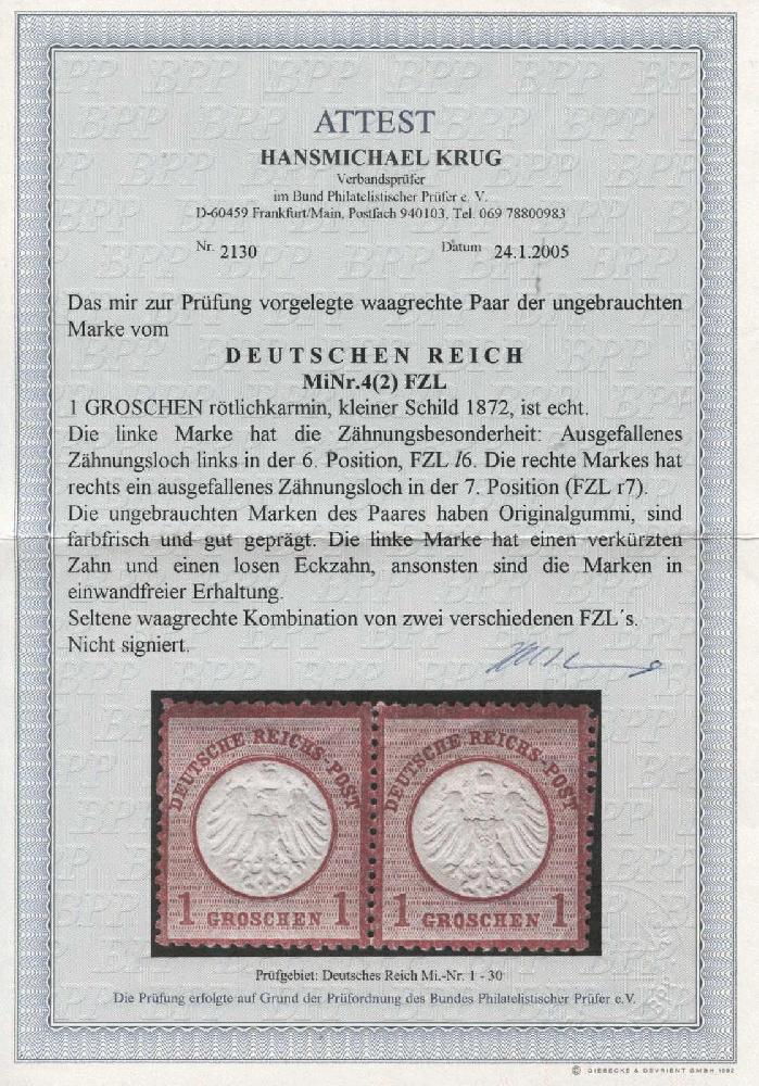 | Prüfer: | Krug, Hansmichael (BPP (Bund Philatelistischer Prüfer)) |