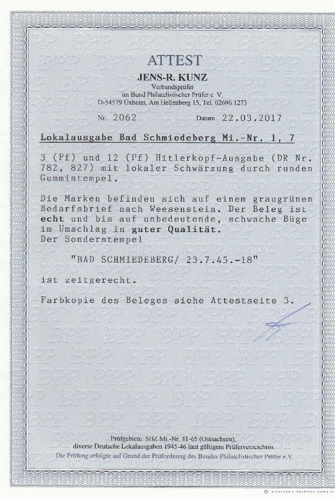 | Prüfgebiet: | Deutsche Lokalausgaben 1945 Bad Schmiedeberg |