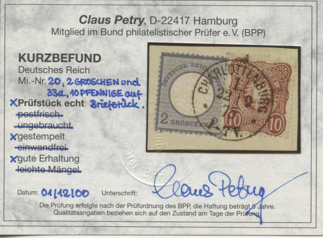 | Prüfer: | Petry, Claus (BPP (Bund Philatelistischer Prüfer)) |