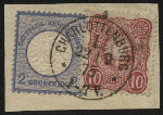 | Zusatzinformationen und Suchstichworte: | 8. Tiergarten Briefmarken und Münzen Auktion Auktionstermin: 01. Juli 2022 Los 265 Deutsches Reich, 1875 Pfennige 2 Groschen blau in Mischfrankatur mit 10 Pfge. auf kleinem Briefstück von " Charlottenburg 22.9.75 ", gut erhalten, Kurzbefund Petry BPP Zuschlag 72,00 EUR |