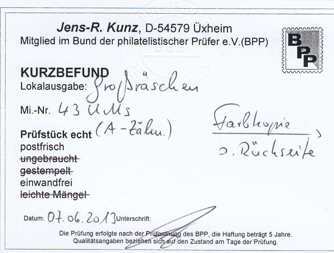 | Prüfgebiet: | Deutsche Lokalausgaben 1945 Großräschen |