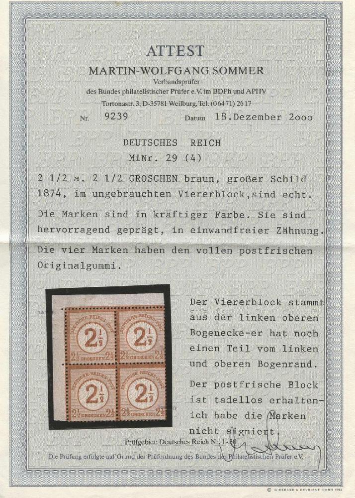 | Prüfer: | Sommer, Martin-Wolfgang (BPP (Bund Philatelistischer Prüfer)) |