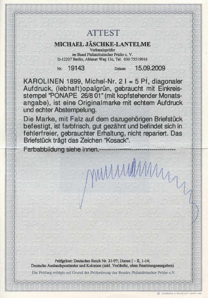 | Prüfgebiet: | Deutsche Kolonien Karolinen |