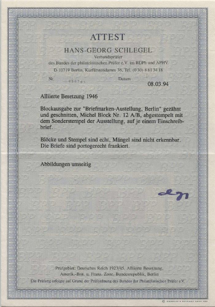 | Prüfgebiet: | Alliierte Besetzung Gemeinschaftsausgaben Blocks |