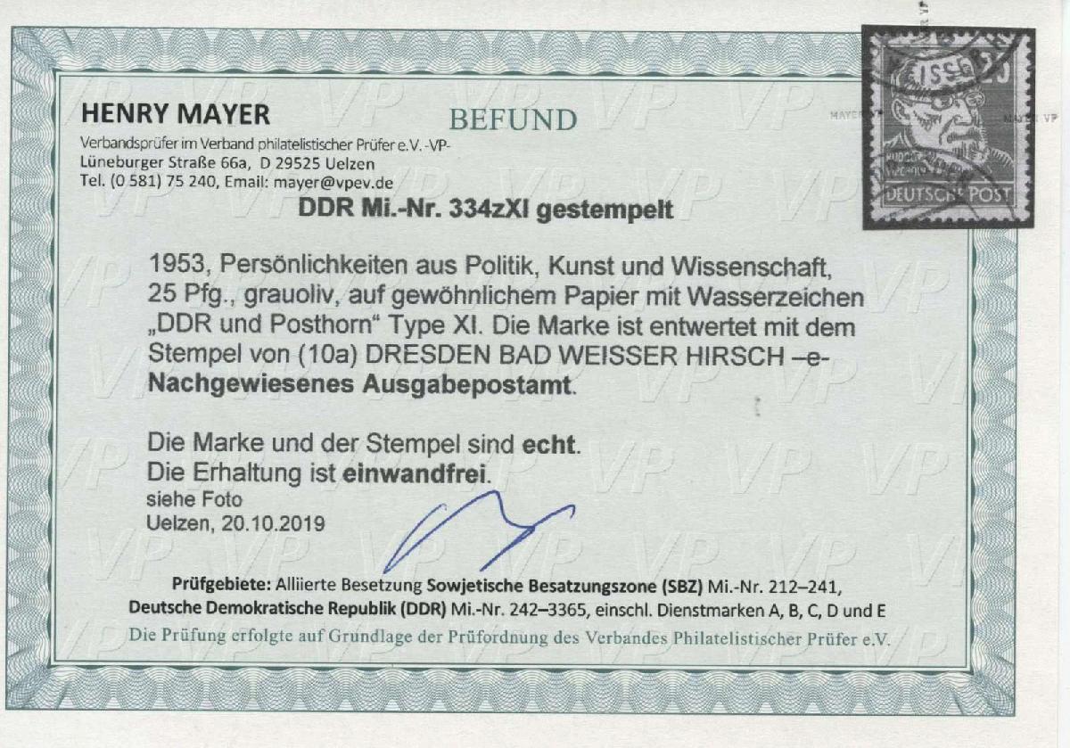 | Zusatzinformationen und Suchstichworte: | 8. Tiergarten Briefmarken und Münzen Auktion Auktionstermin: 01. Juli 2022 Los 538 DDR 1953, 25 Pfg. Virchow grauoliv, gewöhnliches Papier, echt und einwandfrei, Fotobefund Mayer Ausruf 80,00 EUR |