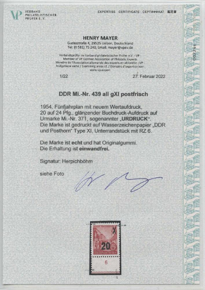 | Zusatzinformationen und Suchstichworte: | 8. Tiergarten Briefmarken und Münzen Auktion Auktionstermin: 01. Juli 2022 Los 542 DDR 1954, Fünfjahrplan mit neuem Wertaufdruck 20 auf 24 Pfg., sogenannter " Urdruck ", Luxus - Unterrandstück mit RZ 6, Wasserzeichen XI, echt und einwandfrei, signiert Herpichböhm und neuestes Fotoattest Mayer Ausruf 600,00 EUR |