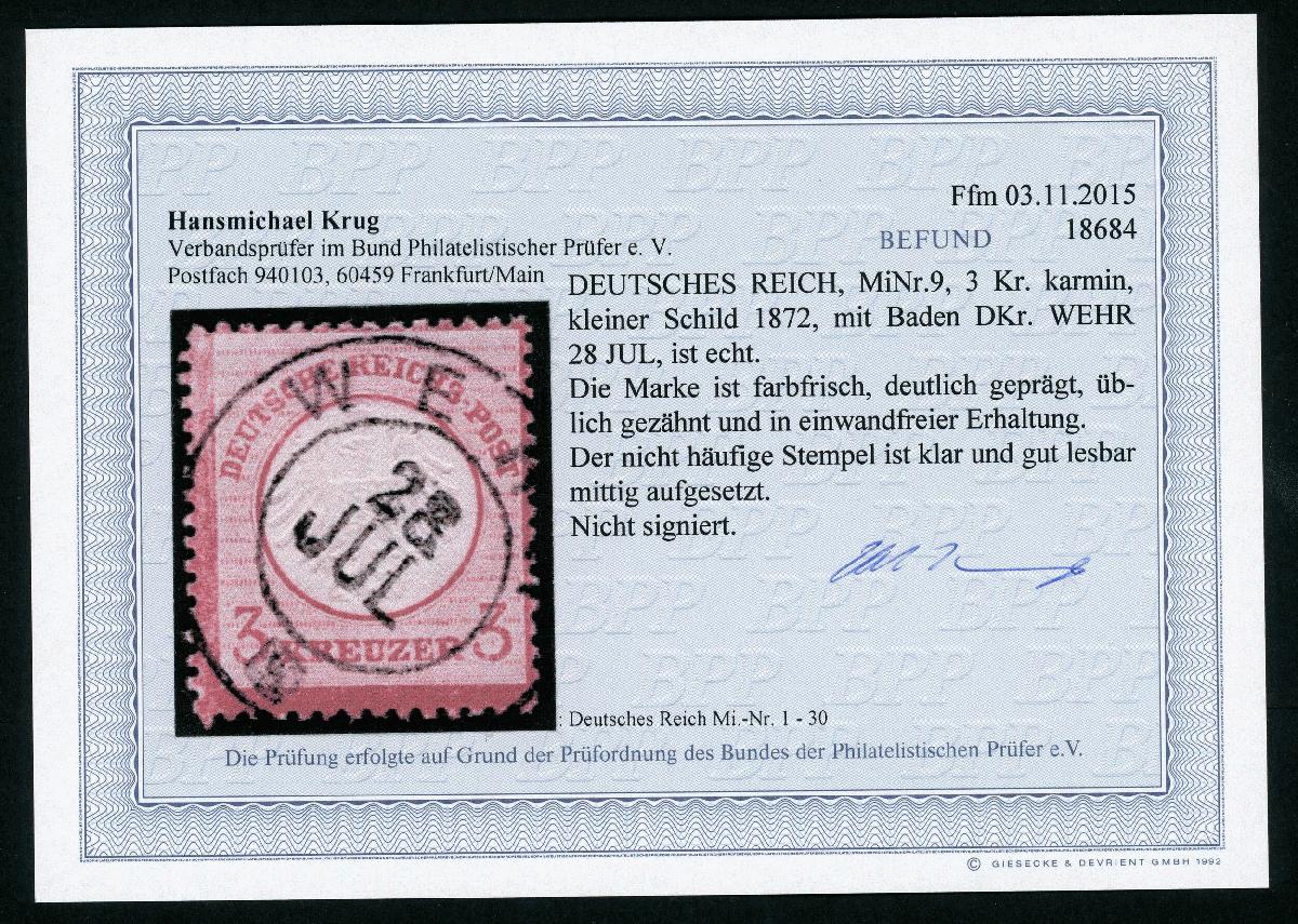 | Prüfer: | Krug, Hansmichael (BPP (Bund Philatelistischer Prüfer)) |