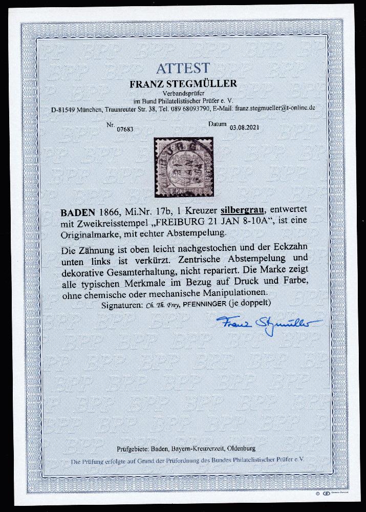 | Prüfer: | Stegmüller, Franz (BPP (Bund Philatelistischer Prüfer)) |