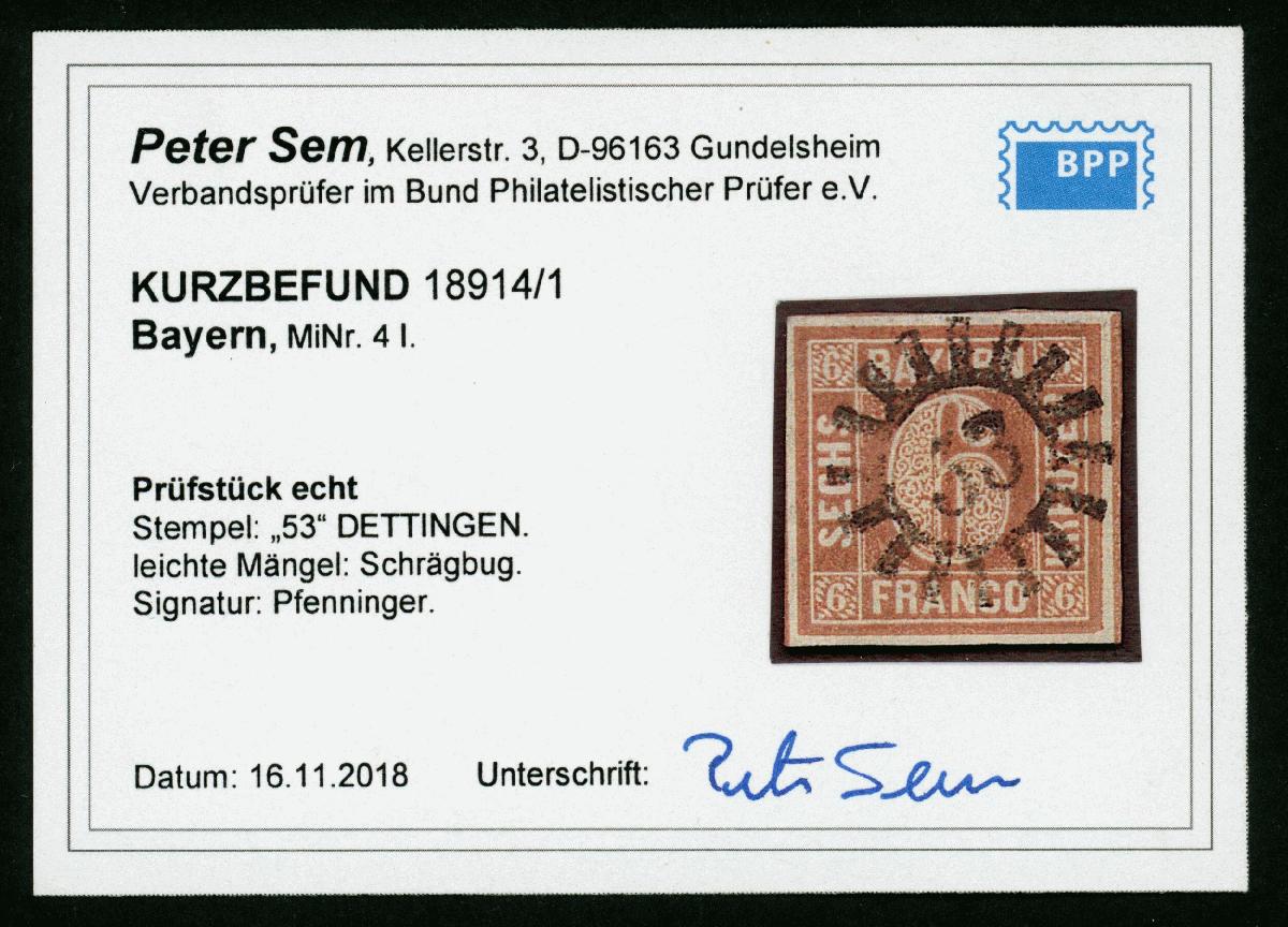 | Prüfer: | Sem, Peter (BPP (Bund Philatelistischer Prüfer)) |