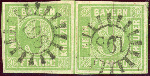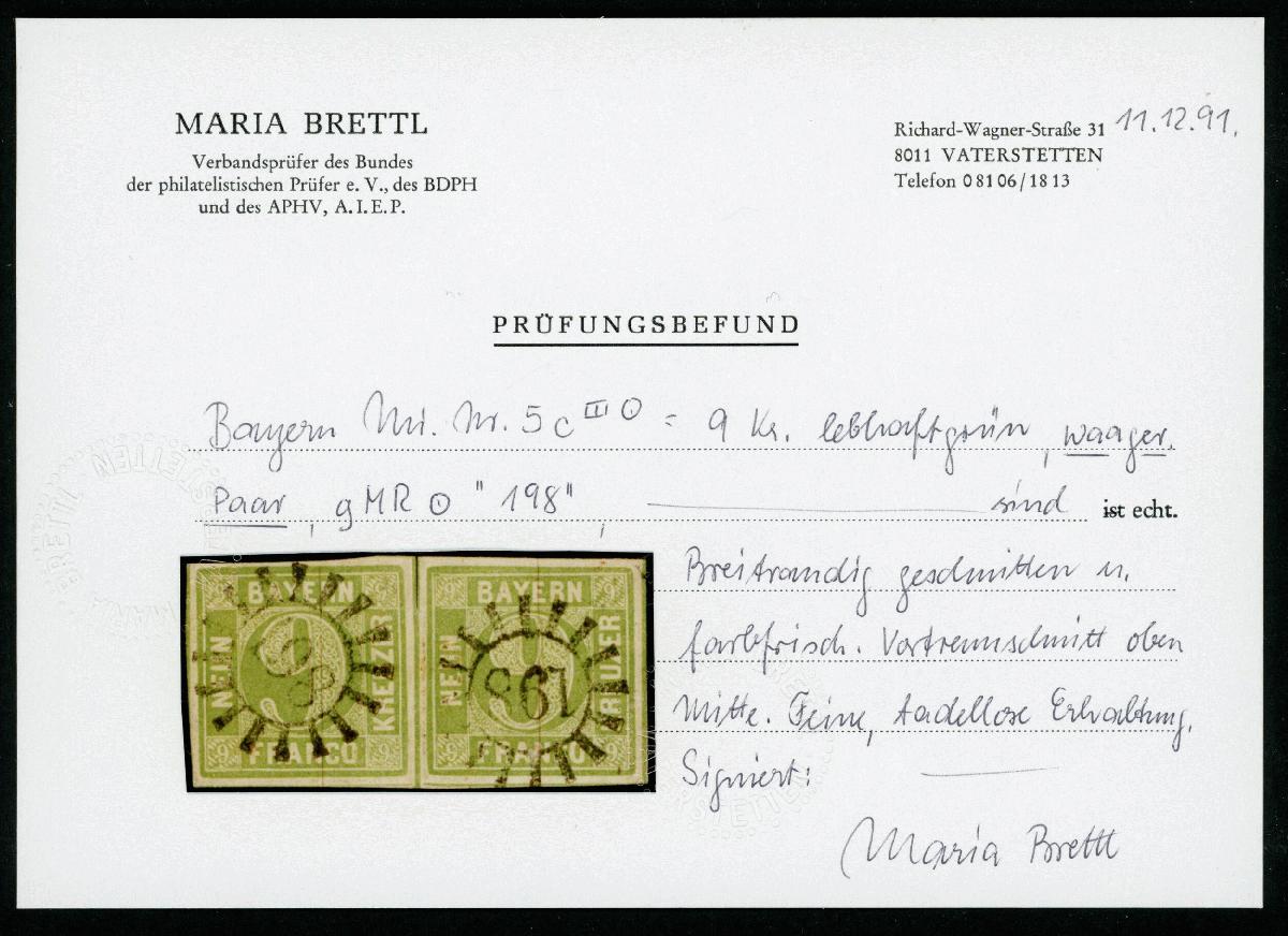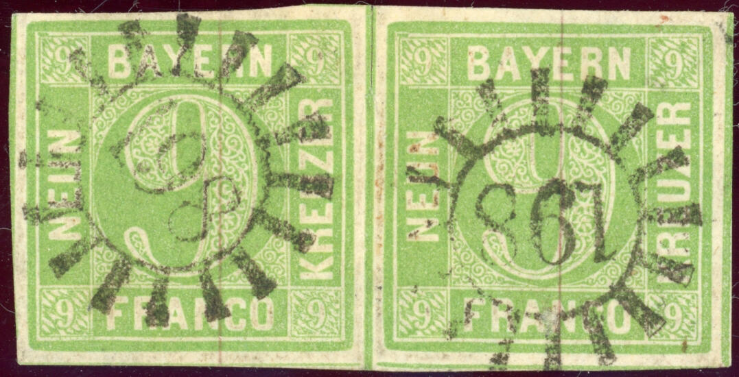 | Zusatzinformationen und Suchstichworte: | Klüttermann - 4. Auktion Auktionstermin: 28. Juli - 5. August 2022 Los 258 Altdeutschland Bayern 9 Kr. gelblichgrün, waager. Luxuspaar mit 2mal gMR 198, FB Brettl Zuschlag 90,00 EUR |