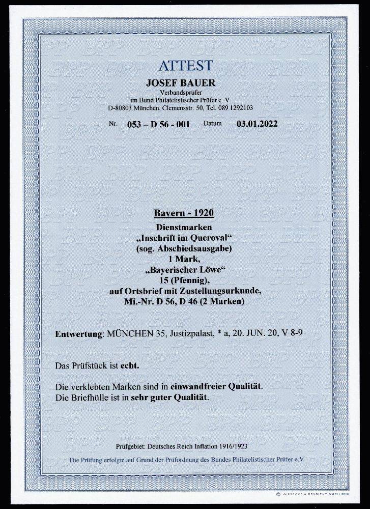| Prüfgebiet: | Altdeutschland Bayern Dienstmarken |