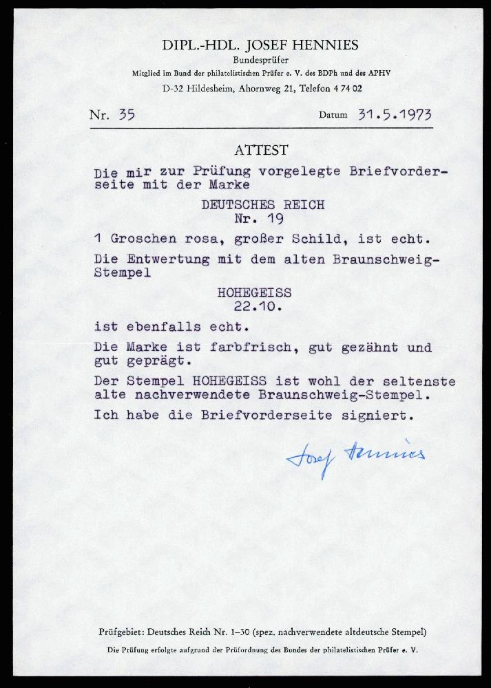 | Prüfer: | Hennies, Josef (BPP (Bund Philatelistischer Prüfer)) |